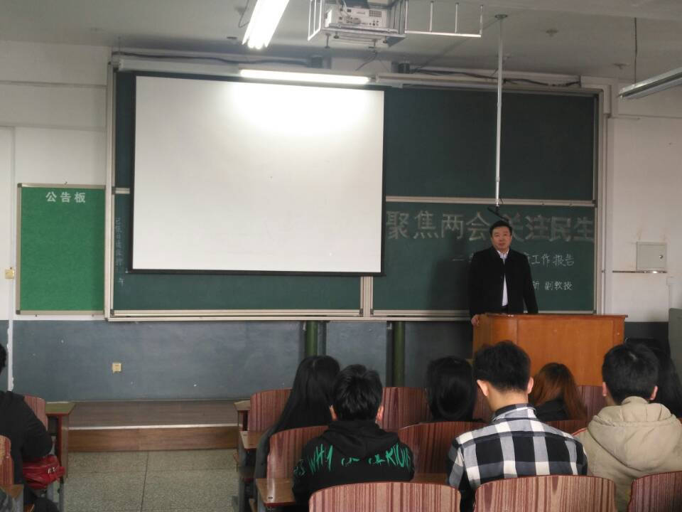 为深入学习贯彻2019全国两会精神,提升我院师生政治理论素养,3月21日,校党委宣传部特邀马克思主义学院刘国新副教授在1316教室为我院师生做“聚焦两会,关注民生——学习领会政府工作报告”主题讲座。讲座由管理学院党总支书记郭强主持,管理学院师生100余人参加讲座。