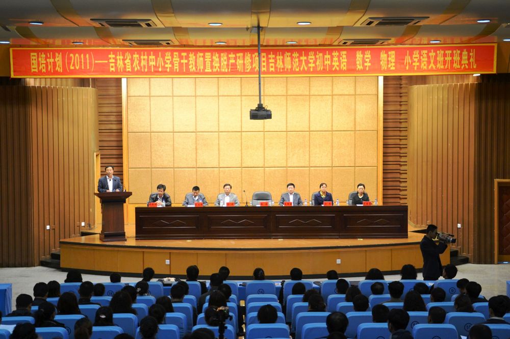 10月9日上午,国培计划(2011)——吉林省农村中小学骨干教师置换脱产集中研修项目威尼斯7798cc初中数学、初中英语、初中物理、小学语文班开班典礼在图书馆报告厅举行。我校副校长张勇出席开班典礼并致欢迎词,来自全省农村中小学的200余名骨干教师参加了开班典礼。