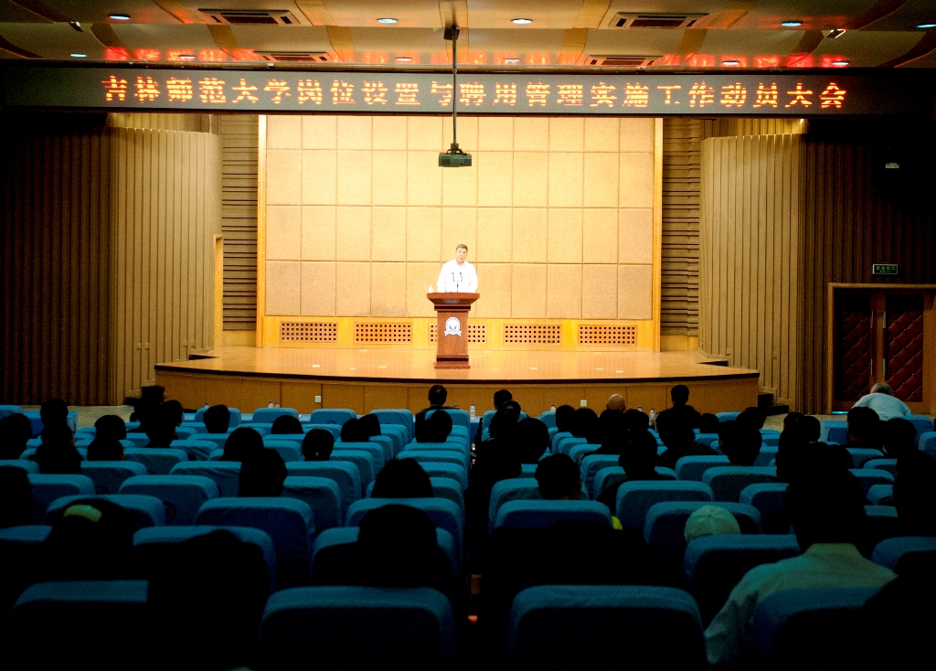 校长杨景海就本次岗位的设置与聘用管理工作讲了三点意见:一、深刻领会高校实施岗位设置与聘用管理工作的目的和重要意义。要从国家事业单位人事制度改革的大局中去思考实施岗位设置管理的重要作用,将岗位设置与聘用管理同学校的发展结合起来,逐步建立起一套符合学校发展规律和特点的人事管理制度,实现学校人事管理的科学化、法制化。二、充分了解学校实施岗位设置与聘用管理工作的实质和前期准备。学校依据吉林省关于事业单位岗位设置管理工作相关文件精神,紧密结合学校实际情况,成立了岗位设置与聘用管理工作领导小组,坚持“统筹规划、分步实施、稳步推进、不断完善”的总体思想,开展了一系列积极有效地工作。三、实施我校岗位设置与聘用管理工作的基本要求。实施岗位设置与聘用管理工作涉及人事管理的各个方面,与教职工的切身利益密切相关。各单位必须提高认识,严格执行政策,做好宣传讲解工作,使广大教职工理解政策,从而积极支持和参与这项工作,确保该项工作平稳有序进行。