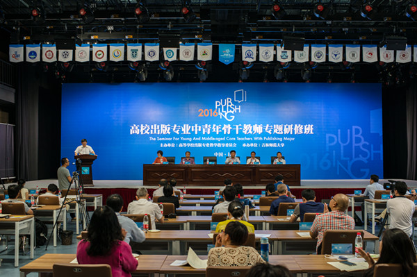 7月26日,经国家新闻出版广电总局人事司批准,由高等学校出版专业教学指导委员会主办、我校组织并承办的高校出版专业中青年骨干教师专题研修班在我校长春校区开班。国家新闻出版广电总局人事司副司长、高等学校出版专业教学指导委员会主任委员李宏葵,韬奋基金会理事长、编审聂震宁,吉林省新闻出版广电局副局长、正厅级巡视员董柏超,高校出版专业教学指导委员会秘书长陈丹,我校校长杨景海出席开班仪式。